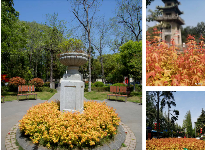 傳統(tǒng)色塊,無非綠,紅,黃三種顏色,“金禧”從萌芽到葉片成熟綻放,會經(jīng)歷多個變色階段,所以色塊隨著新葉的生長,會呈現(xiàn)多種色彩效果,并且層次遞進是其他任何色塊苗木無法比擬的。